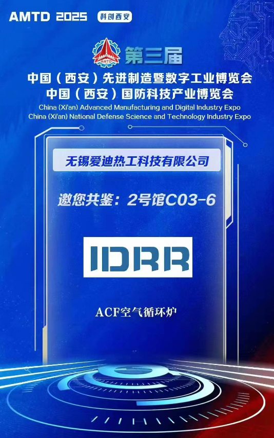 2025年7月25日至27日,中国(西安)国防科技产业博览会于西安国际会展中心盛大开幕。作为热加工领域的创新先锋,无锡IDRR爱迪热工携其核心产品空气循环箱式炉及多项突破性技术亮相展会2号馆C03-6展位,为军工航天、新材料、医疗器械、高端制造等领域带来量身定制的热加工解决方案,引发行业热议。