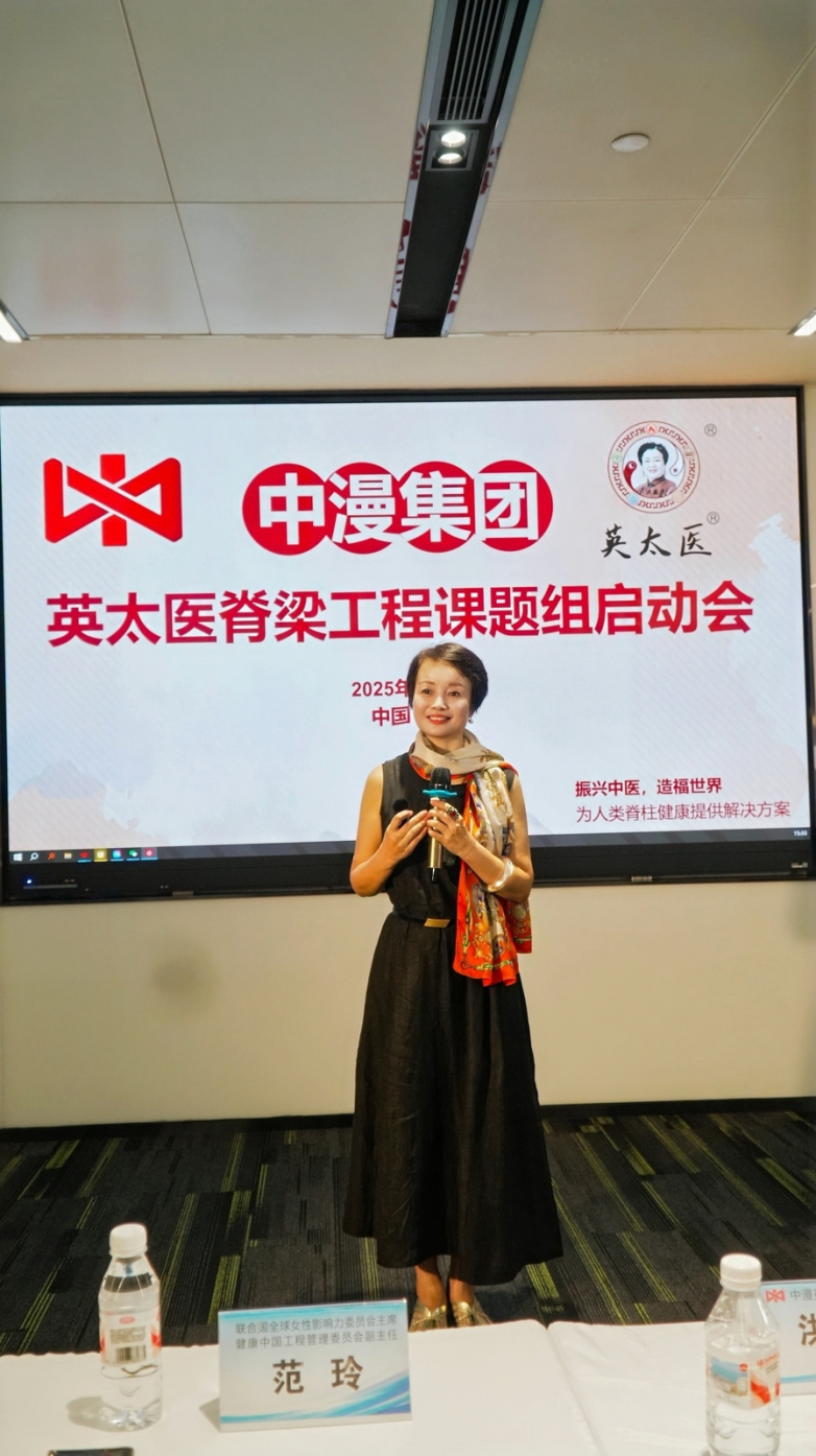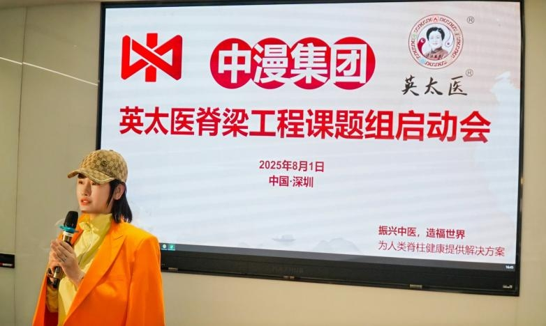 (2025年8月1日,深圳),中漫英太医脊梁工程课题组启动仪式在深圳隆重举行。本次仪式由中漫数智与中漫健康联合主办,标志着我国脊柱侧弯防控工作迈入科技与中医深度融合的新阶段。作为响应《健康中国2030》国家战略的关键举措,课题组汇聚政府、医疗、科研及企业多方力量,旨在以“中医自然疗法+现代科技”攻克脊柱侧弯全球难题,守护青少年脊梁健康。启动仪式由知心老师共同主持,邀请了包括联合国全球女性影响力委员会主席范玲女士等数十位嘉宾出席,共同见证这一历史性时刻。