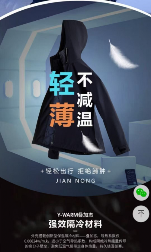 行业革新:推动服装行业从“臃肿保暖”向“轻薄智能”转型,获评2024服贸会“全球十大绿色科技产品”。