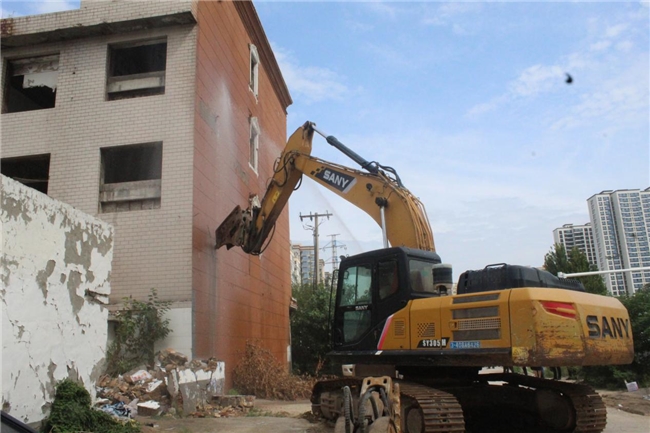 拆迁现场秩序井然,挖掘机、雾炮车、洒水车等设备已提前就位,施工人员对作业区域进行了全面警戒围挡,确保施工安全。待各项准备工作就绪后,伴随着阵阵机械轰鸣声,拆迁作业正式启动。