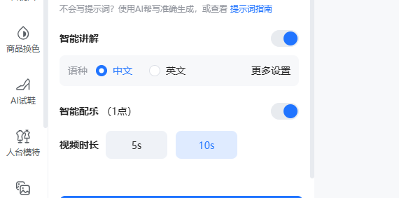 自定义讲解:若需更精准的内容,可手动输入配音文字。需注意字符限制:5 秒视频中文不超过 25 字、英文不超过 100 字符;10 秒视频中文不超过 50 字、英文不超过 200 字符。