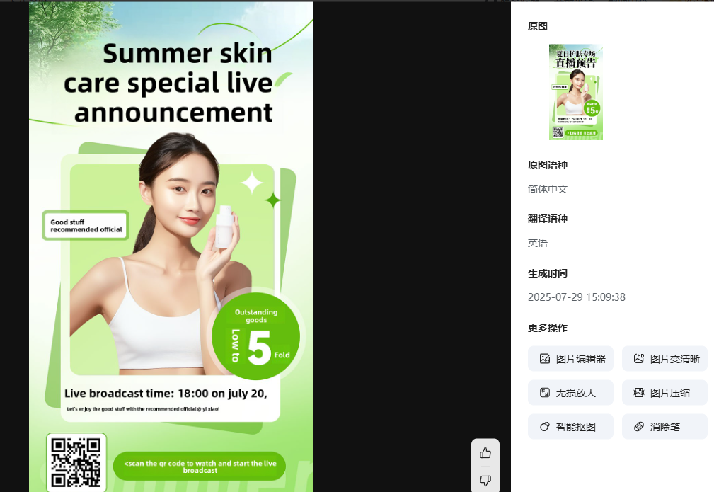 还在为图片里的文字翻译抓头发?尤其是做跨境生意,商品图、海报、宣传物料上的多语言内容,手动处理既费时间又容易出错。别急,易可图的图片翻译功能就是来 “救场” 的,一键操作,多语言轻松转换,让翻译这件事从此变得顺手又高效。