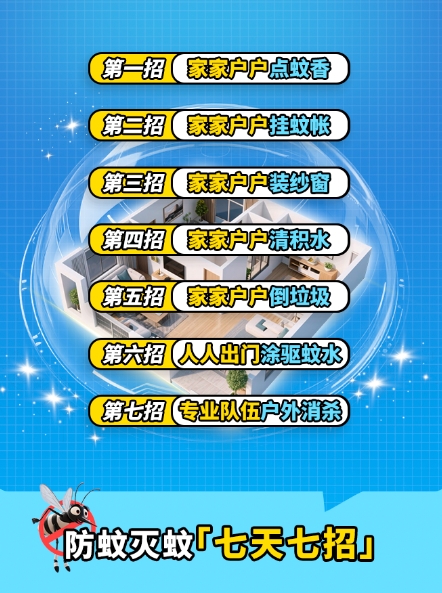 近期蚊媒疾病肆虐,为有效遏制蚊媒疾病传播,政府呼吁市民积极响应省委、省政府关于开展爱国卫生运动的号召,共同参与防蚊灭蚊工作,践行 “防蚊灭蚊七招工作法”:家家户户点蚊香、挂蚊帐、装纱窗、清积水、清垃圾,人人出门涂驱蚊水,一早一晚灭成蚊。同时,倡导市民积极参与 “1130” 防蚊灭蚊行动:上下班 1 分钟清积水,每周 1 次大扫除,每天 3 分钟排查孳生地,携手共建无蚊场所。