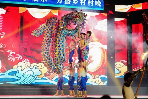原创RAP唱跳节目《hello万盛》用时尚节拍展现城市活力;贵州省桐梓县的高腔大山歌《情妹挑水在山腰》唱响渝黔交界地带的粗犷豪迈;市级广场舞展演一等奖作品《红苗舂米舞》生动演绎万盛苗家儿女建设美丽乡村的火热场景;情景表演《春风吹拂“文明花”》用小品、曲艺、歌舞串烧的创新形式,生动展示万盛清廉文化建设工作成果;《高山流水敬酒歌》以歌伴舞,苗家儿女现场敬酒互动,传递浓郁苗族风情;互动环节中,水与火两条非遗舞龙在夜色中迸溅绚烂火花,把“村晚”气氛推向顶点……此外,云南网红民谣组合“晴天姐妹”的手鼓演唱、山西省忻州市的舞蹈《和合情 暖天下》的北方民俗风情展示,更让这场 “村晚” 成为一场跨越地域的文化盛宴。