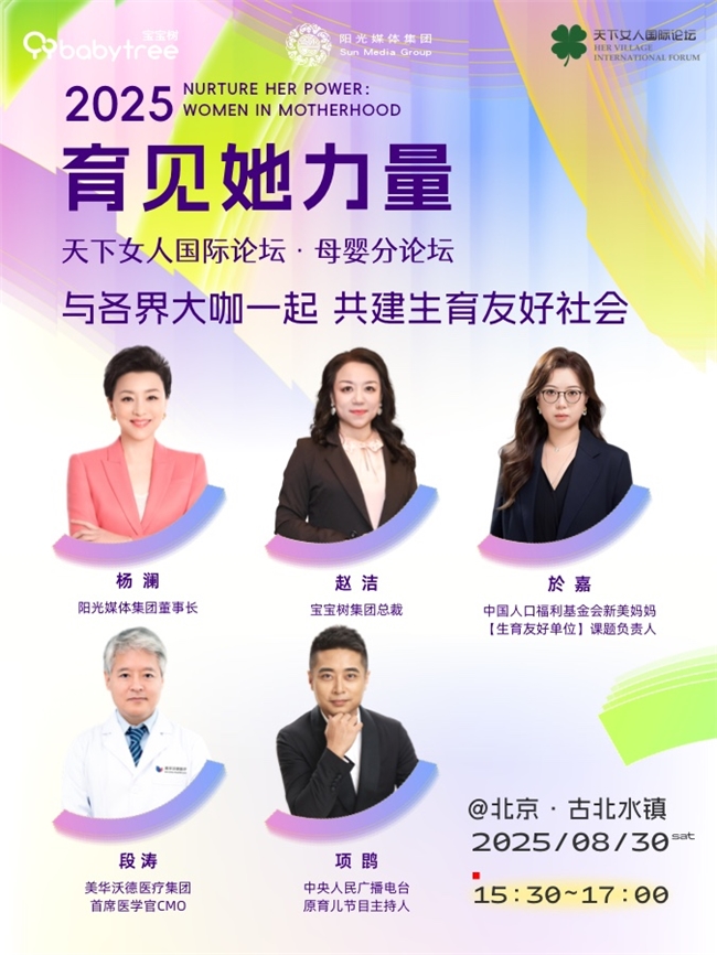 宝宝树集团联合阳光媒体集团共创天下女人国际论坛之母婴分论坛,为母婴领域品牌提供高端对话平台。本次母婴分论坛以“女性在育儿过程中的自我成长”为核心议题,力邀各界重量级嘉宾,共同探讨在母亲角色之外,女性如何实现个人价值的持续绽放,以及社会各方应如何携手,为她们创造更友好的生育与发展环境。