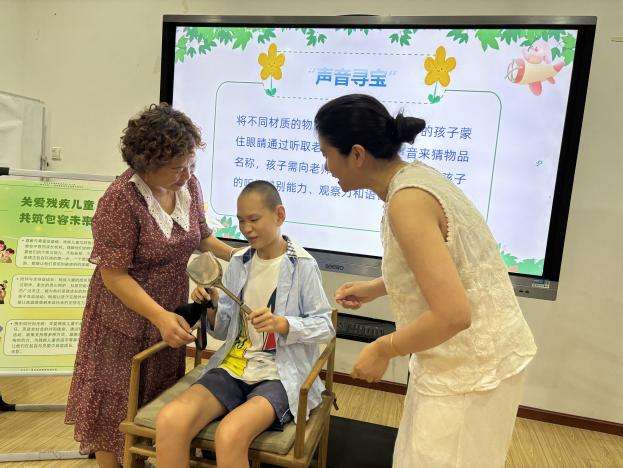 本次活动邀请12组残疾儿童家庭和普通儿童家庭共同参与。在专业老师的引导下,家长和孩子们将一起体验丰富多彩的互动环节。活动以温馨的破冰游戏“家庭故事接龙”拉开序幕,每个家庭轮流续编故事情节,激发孩子们的想象力,拉近彼此的距离。随后,“声音寻宝”游戏将带领孩子们开启一场奇妙的听觉探索之旅,孩子们通过辨别不同材质物品的敲击声,锻炼听觉敏感度和语言表达能力。而“猜猜气球里藏什么”则让孩子们通过触摸感知气球内的物品,与家长协作完成配对挑战,在趣味互动中提升触觉感知和联想能力。