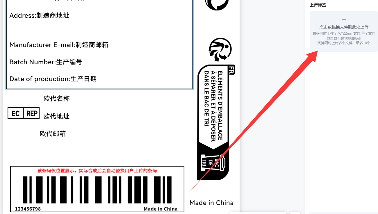 想让商品顺利进入欧盟市场?合规的欧代标签必不可少。它不仅包含各类关键信息,还得满足欧盟对格式、标识的严格要求,一丝疏忽都可能导致麻烦。不过别担心,掌握正确的方法和工具,就能快速制作出符合标准的欧代标签,比如易可图的跨境合规标签功能,就能帮你快速合成符合要求的标签,新手也能上手,具体步骤如下。