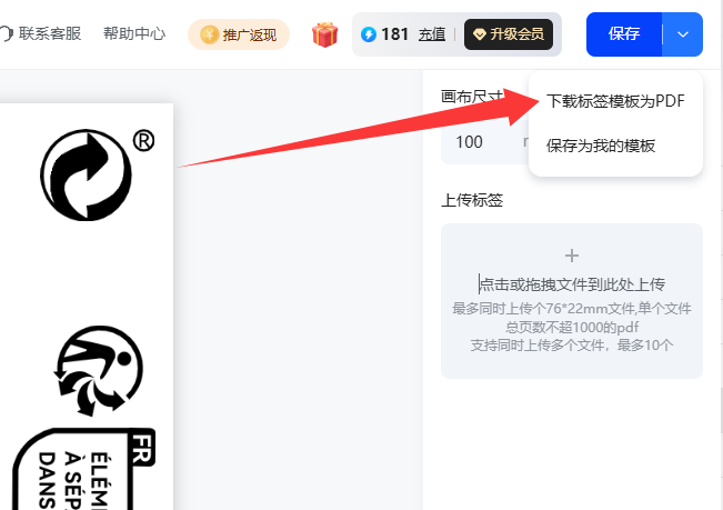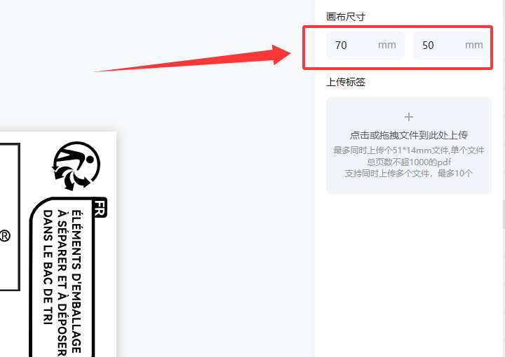 调整尺寸:如果你的标签纸大小特殊,右上角的 “画布尺寸” 可以直接修改(支持毫米单位,比如 70*50mm、100*100mm 等),确保标签打印出来能完美贴合包装。