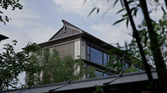 作为中建智地文化营宅宋风美学作品,中建宸园承袭《营造法式》营宅智慧,依举折法打造的当代九脊殿屋顶,勾勒出天空下的优雅弧度。化繁为简的宋式铺作和叠涩,转译传新的宋式悬鱼、鸱尾,显露出古今交织的东方美学韵味。