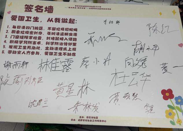 本次活动通过知识科普、环境整治、居民参与三个环节的有机结合,既提升了居民的卫生防病意识,又切实改善了社区环境卫生状况。活动最后设置的"爱国卫生·从我做起"签名墙得到居民积极响应,大家纷纷签名承诺,表示将从自身做起,自觉维护社区卫生环境。