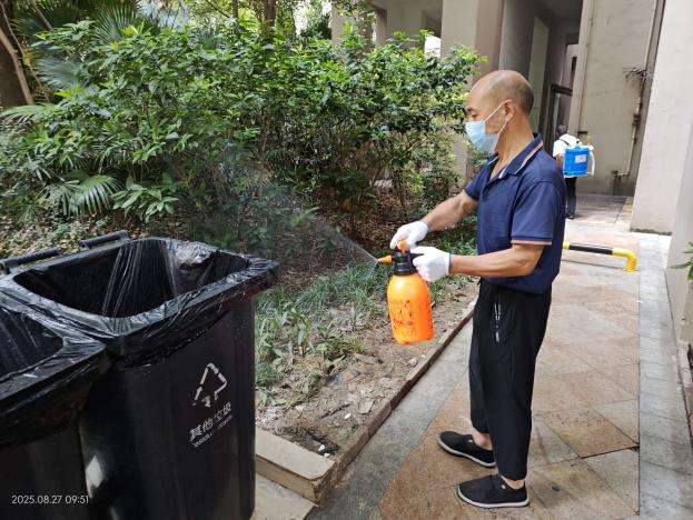 随后,社工向志愿者分发了蚊蝇杀虫剂、消毒水和清洁工具。志愿者与居民携手合作,分组开展环境整治行动。重点清理了绿化带、楼道角落的垃圾杂物,并对院落角落、排水道等蚊蝇易滋生区域进行了专业消杀,有效切断了病媒生物传播途径。志愿者们同时在现场发放宣传资料,进一步扩大活动影响力。