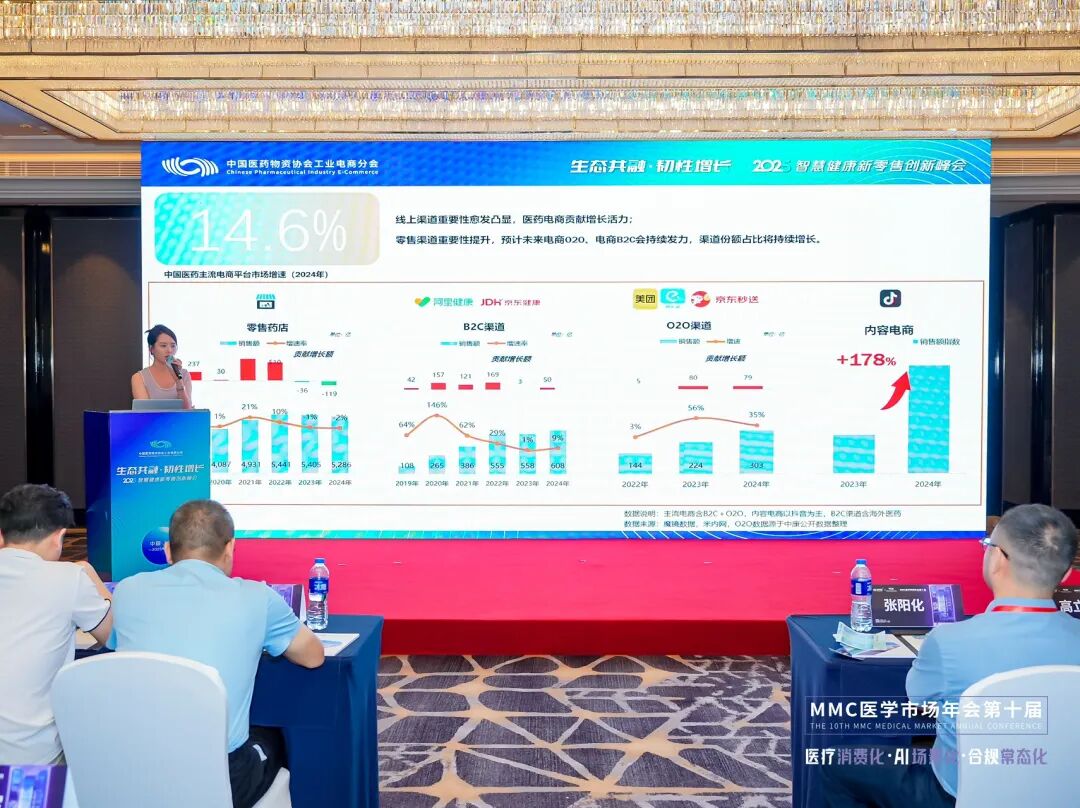 米内网零售平台副总监焦启明基于米内网海量数据,分析中国医药电商市场规模、增长趋势、细分领域表现及消费者需求变化,为企业把握市场动态、制定发展战略提供数据参考。