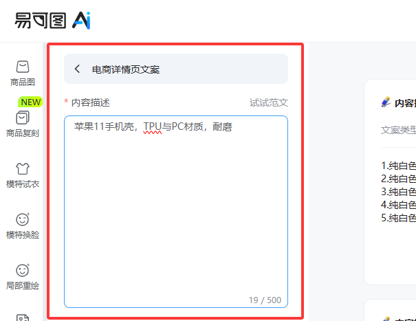 掌握了这些要点,要是还是觉得写起来费时间,不妨试试用工具辅助 —— 比如易可图的 AI 文案功能,就能帮你一键生成符合需求的电商文案,提高效率。