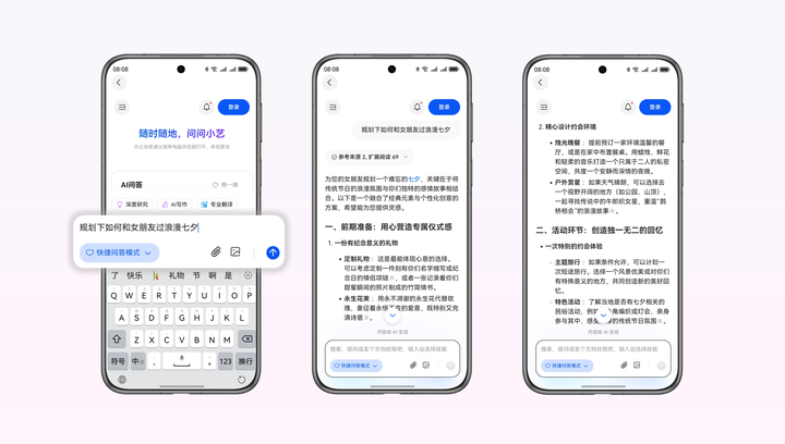不仅如此,要是你对七夕礼物挑选、出行规划拿不定主意,只需在搜索框调出浏览器 AI 问答功能,区别于往常网页信息罗列,浏览器AI问答可智能思考并给出实用建议,高效解决节日筹备难题。