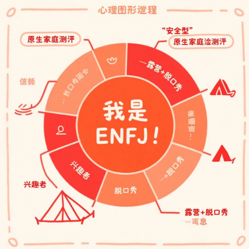 抱着“免费咖啡+闲着也是闲着”的心态,我填了报名表。没想到,报名链接弹出的不是“收入范围”,而是一连串奇怪的问题:“独处时你充电的方式?”“父母吵架时你通常怎么做?”我花了 12 分钟做完,页面生成一张四色雷达图——原来我是 ENFJ,原生家庭测评显示“安全型”,兴趣图谱里“露营+脱口秀”被标红。