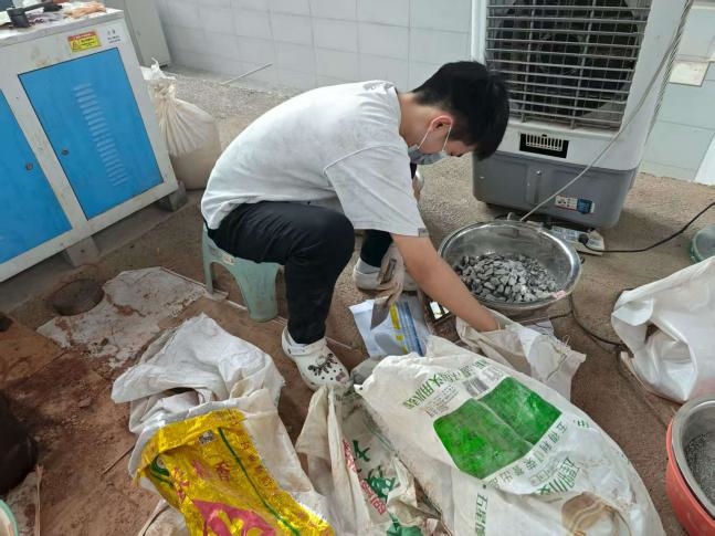 另一分队成员扎根隧道工程灾变防控与智能建养全国重点实验室,开展“赤泥基胶凝材料稳定碎石”课题攻关。从原材料配比、试件制备到长期性能测试,队员们严谨操作、细致记录,在导师的指导下逐步掌握科研全流程。该研究致力于工业固废资源化利用,是团队积极响应“绿色发展”理念、投身“无废城市”建设的切实行动,也为相关行业技术创新提供了有益参考。