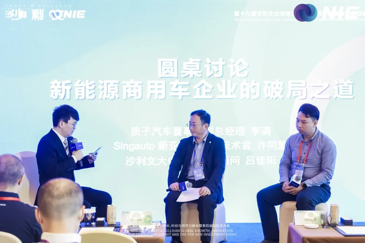 在“双碳”战略与智能制造双重驱动的背景下,新能源商用车产业迎来发展风口,同时也面临技术门槛高、运营成本敏感、基础设施不完善等多重挑战。为探讨行业破局路径,论坛举办“新能源商用车企业的破局之道”圆桌讨论,质子汽车董事及副总经理李满先生、新亚科技首席技术官许同盟先生对此展开深入讨论,共同分享在技术创新、场景深耕等方面的实践与洞察。沙利文咨询顾问吕佳阳先生担任本场圆桌主持。