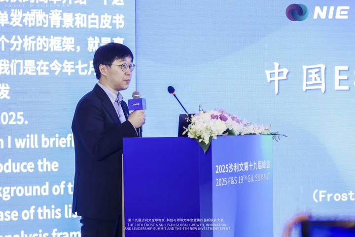 8月27日,由全球领先的增长咨询公司弗若斯特沙利文(Frost & Sullivan,简称“沙利文”)主办的第十九届沙利文中国增长、科创与领导力峰会暨第四届新投资大会(以下简称 “2025沙利文新投资大会”)ESG与新质生产力论坛在上海静安香格里拉酒店隆重举办。