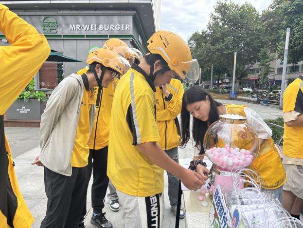 活动现场精心设置了"心声扭蛋"互动环节,骑手们通过趣味性的方式,或回答问题,或书写建议,轻松表达工作中的真实需求与想法。完成互动的骑手随后领取了精心准备的"暖心能量包",获得了实实在在的物质支持。这种创新的互动形式既增强了参与感,也为社区收集骑手心声提供了有效途径。后续,社区将通过链接企业、商户等多方力量,共同助力骑手心愿的达成。