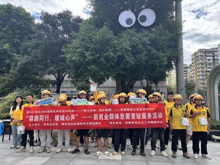 2025年9月12日上午,荷花池街道荷花池社区联合成都家悦社会工作服务中心,在金牛万达广场3号门成功举办"驿路同行,暖城心声"新就业群体急需紧缺服务活动。本次活动聚焦辖区内外卖骑手群体的实际需求,通过创新服务模式,为30名外卖骑手送去温暖与关怀。