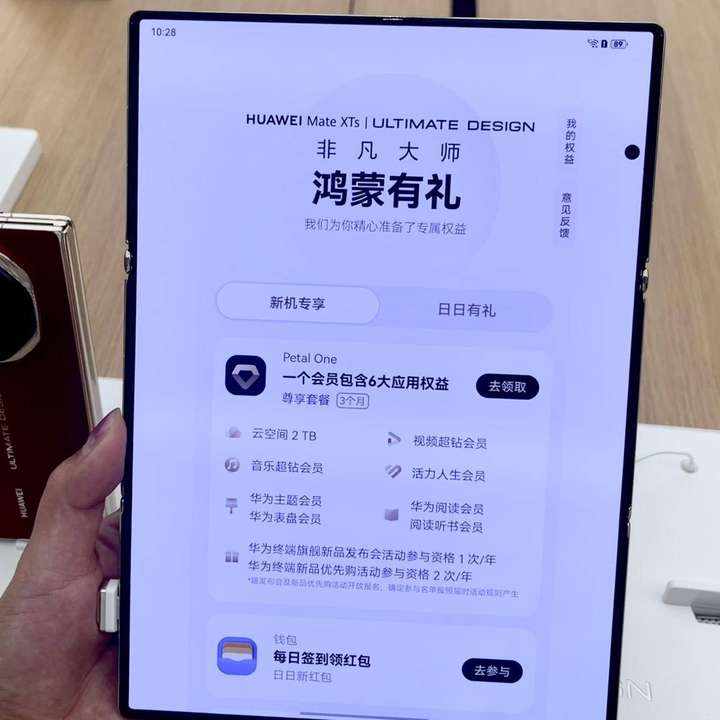 说实话,我之前觉得套餐可能只是噱头,但实际用下来发现每一项都很实用,省心省力。最关键是,Petal One尊享套餐平时单买的话一个月就得159元,华为Meta XTs非凡大师直接免费送3个月!购买新机的机主拿到手机激活后记得在负一屏“鸿蒙有礼”去领,强烈推荐,真的好用!