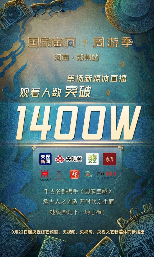 今年,《国家宝藏》IP迭代新媒体2.0版本,推出由周大生珠宝独家冠名播出的新样态融媒体节目《国家宝藏》周游季。节目立足全国文博文旅资源,突破传统游览方式,集结总台和城市新媒体平台,打造一场4小时的新媒体直播,并创作一系列精品中视频节目,深入挖掘中华优秀传统文化价值内涵,探访全国各地的特色表达。