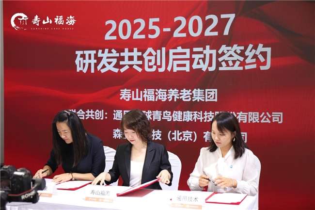 在2025-2027年度研发共创签约环节,寿山福海养老集团与通用环球青鸟健康科技股份有限公司、森丽康科技(北京)有限公司正式达成三方深度合作。此次强强联合,将聚焦技术与服务的融合创新,全力推动AI智能、智能机器人与养老服务场景的深度结合,着力实现服务的精准化、个性化升级,让技术创新真正落地为对长者的温暖关怀。