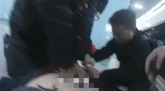 20时32分,接到消息的值班站长王凯工作人员吴琳携带医药箱和AED(自动体外除颤器)赶到现场与杨涛一起接力救护。该乘客杨涛和王凯两人轮流为倒地乘客实施心肺复苏,吴琳则在一旁协助操作AED。该乘客同行亲友在一旁持续呼喊他的名字并配合进行人工呼吸,现场一位身着白色羽绒服率先拨打120急救电话,热心乘客也在一直根据现场情况与接线医护人员保持沟通,确保现场得到实时的专业救护,指导时间一分一秒地过去。在大家齐心协力地救护下倒地乘客逐渐恢复生命体征。