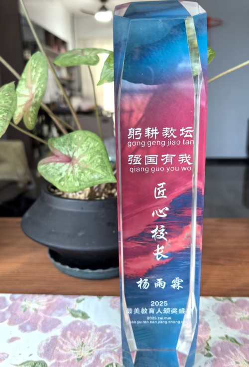 在获奖现场,杨雨霖表示,教育是一场长期的耕耘,每一位孩子都是一颗独特的种子,教师的责任就是守护他们健康生长。“年度十佳匠心校长”的荣誉是对过往的认可,更是对未来的激励。他将继续坚守教育初心,用匠心与热情为学生点亮成长之路。