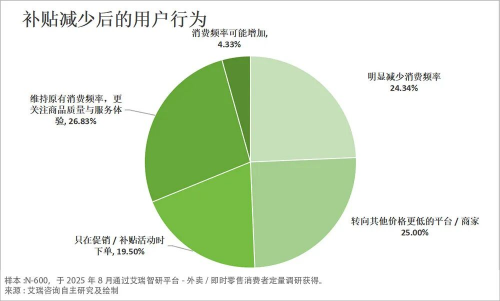 从用户分化情况来看,三类群体的特征十分鲜明。占比最大的是价格驱动型用户,达到49.3%,他们对价格波动最为敏感,补贴退潮后要么转向价格更低的平台(25.0%),要么明显减少消费频率(24.3%),是各平台争夺的基础用户盘。其次是价值驱动型用户,占比26.8%,这一群体最具价值,不将价格作为首要考量,更关注商品质量与服务体验,倾向于维持原有消费频率,对平台品牌忠诚度较高。最后是机会主义型用户,占比19.5%,仅在平台推出促销、补贴活动时下单,消费行为与营销活动强度高度绑定,是平台可通过精细化运营争取的“摇摆客群”。
