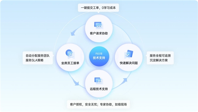 那么,对于成长中的企业而言,应当如何构建一套既专业又成本可控的售后技术支持体系?其中尤为关键的,是如何有效整合“工单系统”与“远程支持工具”?本文将以贝锐旗下的“向日葵技术支持解决方案”为例,为您提供一种高性价比的实现路径。