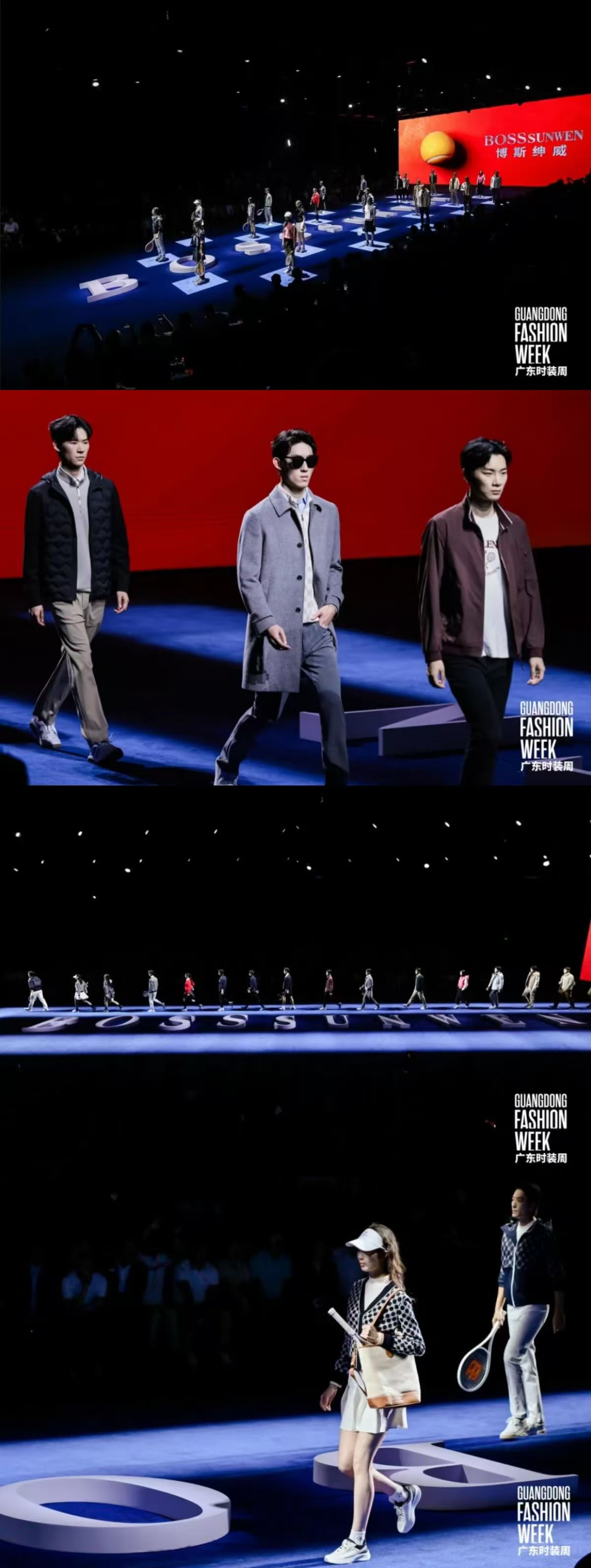开幕首日,中国都市休闲男装标杆品牌BOSSSUNWEN博斯绅威率先以一场“城市流影”大秀拉开T台序幕,打破品类边界,首度发布全新网球系列服装。品牌从都市节奏与网球运动中汲取灵感,将流畅的运动线条与精致都市美学相融合,通过利落剪裁与高科技面料,将商务服饰的质感与运动服装的功能性结合,既完成品牌向运动场景的延伸,又精准契合十五运会热潮与户外运动趋势。