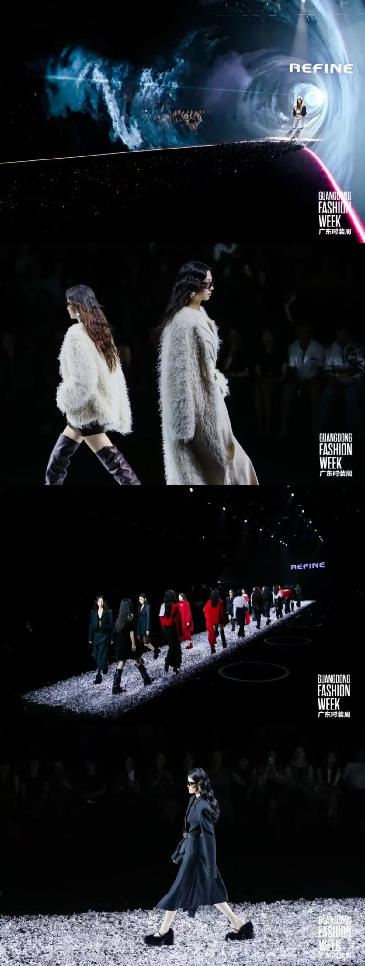 同日,由Z世代设计师主导的REFINE立范带来了“Starry Night 暗夜繁星”系列,演绎摩登、过度魅力和 Mob Wife 美学风格;来自番禺的设计师品牌Donoratico达衣岩则以一场名为“迷城”的沉浸式艺术实验,将面料的质感与身体的韵律完美融合。往后的日程里,SANI、QINGMU、DMDT等原创品牌也将以全新视角诠释广东设计的时代美学,将细腻情感和独特思考融于每一件产品中;麒迹Q.J. STAGE等深受年轻人喜爱的潮牌代表则继续以大胆的解构风格和新锐设计,在Z世代掀起新的潮流风暴;而专注于瑜伽服的聚衣堂等运动派代表品牌则将科技注入每一寸面料,将舒适写进产品基因,完美诠释风靡全球的活力风格。