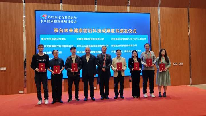 美亚生物科技集团(右三)荣获“京台未来健康前沿成果”