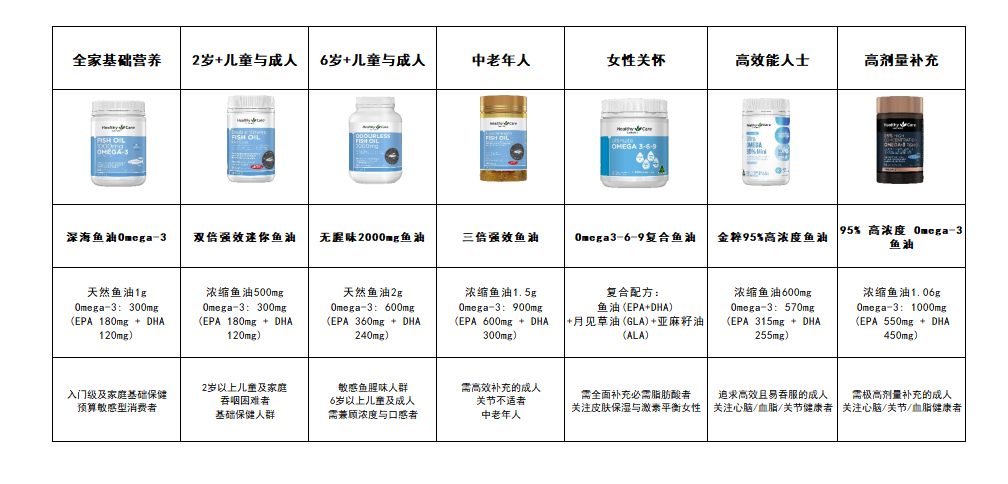 随着“健康中国”战略深入推进,居民健康意识不断提升,科学补充营养素已成为现代人维护健康的重要方式。Omega-3作为人体必需的多不饱和脂肪酸,对心脑、关节、视觉及情绪健康具有关键作用,而鱼油作为其主要膳食来源之一,也成为越来越多消费者的优先选择。澳大利亚专业健康品牌Healthy Care澳世康,基于不同人群的健康需求,推出了多款高浓度、易吸收的鱼油产品,以科学配方+良好体验,为大众提供可靠、易于长期坚持的营养补充方案。