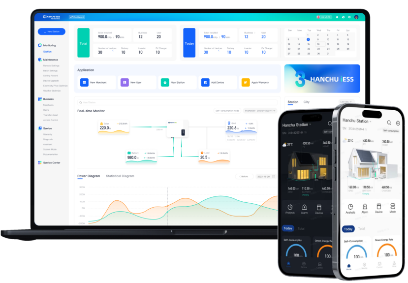 目前,果下科技打造了以Safe ESS与HANCHU iESS为核心的双平台服务体系,全面赋能储能系统的智能化管理与全球化运维。Safe ESS平台融合边缘计算、云端协同与AI算法,构建起“端-边-云”一体化智能架构,具备高效、低延迟的数据处理能力,支持状态感知、故障预测、远程控制、策略管理等功能。HANCHU iESS平台则基于物联网技术与AI驱动的智能算法,实现设备全生命周期的可视化管理与智能化运维,用户可通过网页端与移动端应用随时访问平台,实现对系统的实时监控、远程调度、智能诊断与能效优化。