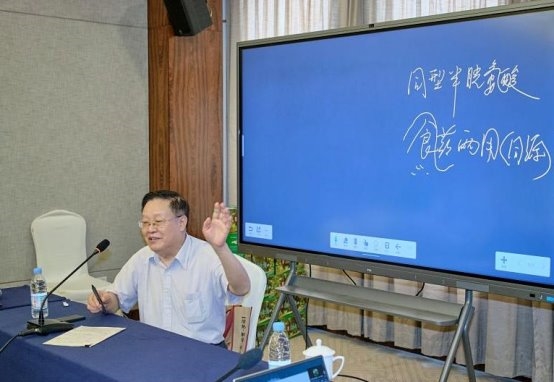 北京中医药大学教授张启文围绕“楂荷斛橘茶”的研发逻辑与临床应用依据作主题报告。他详细讲解了燕山山楂叶、微山湖荷叶、霍山石斛、新会陈橘皮、桐城小花绿茶等原材料的性能与功效,指出该茶饮在保留传统茶饮便捷性的基础上,能调节血脂、改善人体代谢功能,具有显著健康价值。部分饮用过该茶的客户也分享了个人体验,证实了其效果。