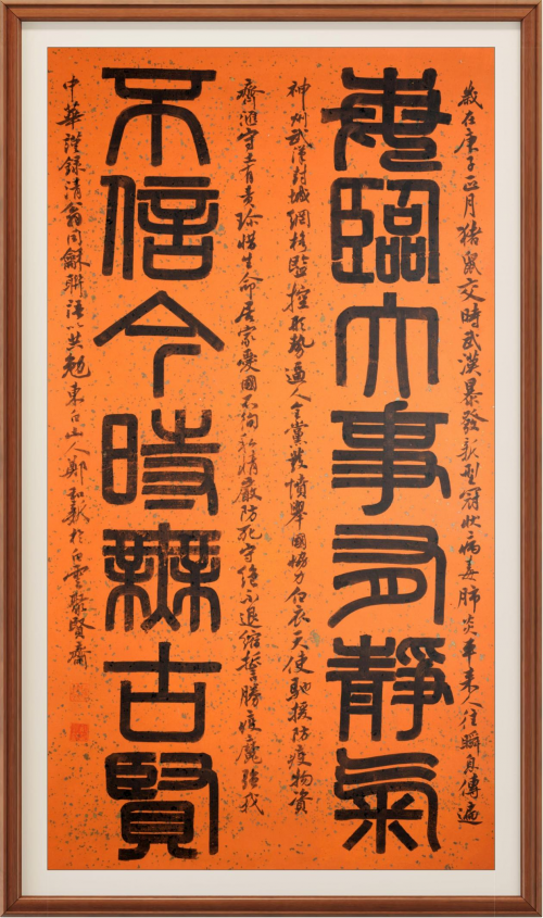 当民族复兴的浪潮激荡文化自信的根基,传统书法便不再是案头闲逸的笔墨消遣,而是承载着中华五千年文明基因、传递民族精神力量的重要载体。在这一宏大的时代语境下,国家一级书法师郑和新的艺术创作,恰似一座贯通古今、连接中外的文化桥梁 —— 桥的一头,紧连着千年书法文脉的深厚积淀,从甲骨文的质朴、金文的庄重,到唐诗宋词里的笔墨意境,都在他的笔端得到传承与延续;桥的另一头,则通向当代民族复兴的精神表达,用兼具传统韵味与时代气息的作品,为文化自信注入鲜活的艺术力量,其艺术实践也因此超越了单纯的技法展现,被赋予了深刻的历史意义。