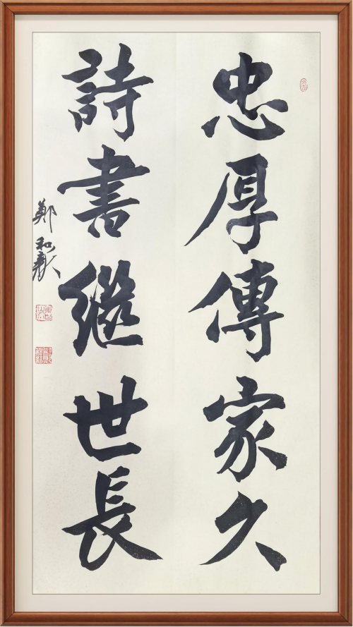 回溯郑和新的书法之路,每一步都与文化传承的使命紧密同频。自幼便对笔墨生出浓厚兴趣的他,凭借过人的天赋与异于常人的勤奋,早早在书法领域崭露头角。1983 年,他因书法功底突出考入文化部门,正式开启专业艺术生涯;1989 年,从中国书画函授大学以优秀学员身份毕业,又顺利进入浙江美院(现中国美院)书法专业深造,有幸师从刘江、章祖安、陈振濂、祝遂之、金鉴才等书法名家,在名师的悉心指导下,他的笔墨功底愈发扎实,对书法艺术的理解也更进一层。此后,他在书法领域的成就不断突破:在中书协举办的第三届正书展中斩获全国奖,拿下文化部第八届群星奖,累计在中书协、浙江省等各类书法赛事中获奖 50 余次,一度被誉为浙江省的 “获奖专业户”。这些荣誉的背后,是他对传统书法的深耕细作 —— 他将正书的端庄大气、行书的洒脱灵动熔铸于笔端,笔下作品既延续了 “骨峻神清自高雅” 的文人风骨,又秉持 “雅俗共赏” 的创作理念,通过深入浅出的笔墨语言,让原本略显高深的书法艺术走进大众视野,唤醒更多人对中华优秀传统文化的认同与热爱,而这份对传统的坚守与传播,正是民族复兴进程中文化自信的生动体现。