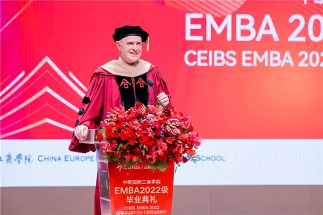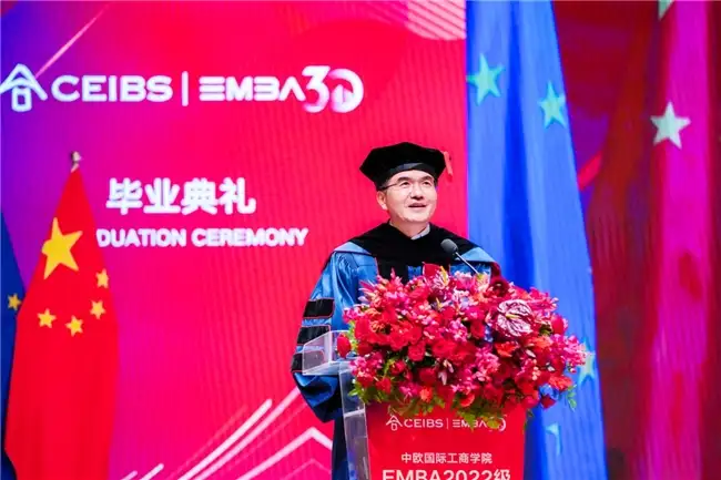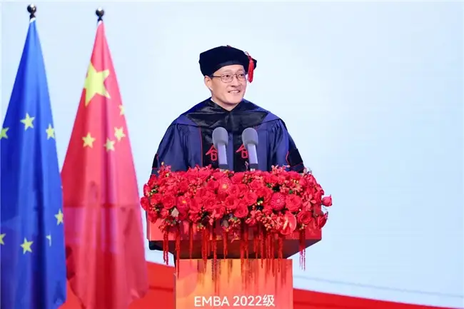 大家下午好!金秋九月,红枫初染,我谨代表中欧国际工商学院的全体教职员工,向今年的EMBA毕业生表达最热烈的祝贺!今年是中欧EMBA课程创办三十周年,从1995年中国大陆首个EMBA班的蹒跚起步,到如今成为全球管理教育领域的标杆,三十载春秋流转,无数商业理想在这里生根、发芽、结果;今天,在座的各位,即将带着中欧的印记,奔赴更广阔的天地。