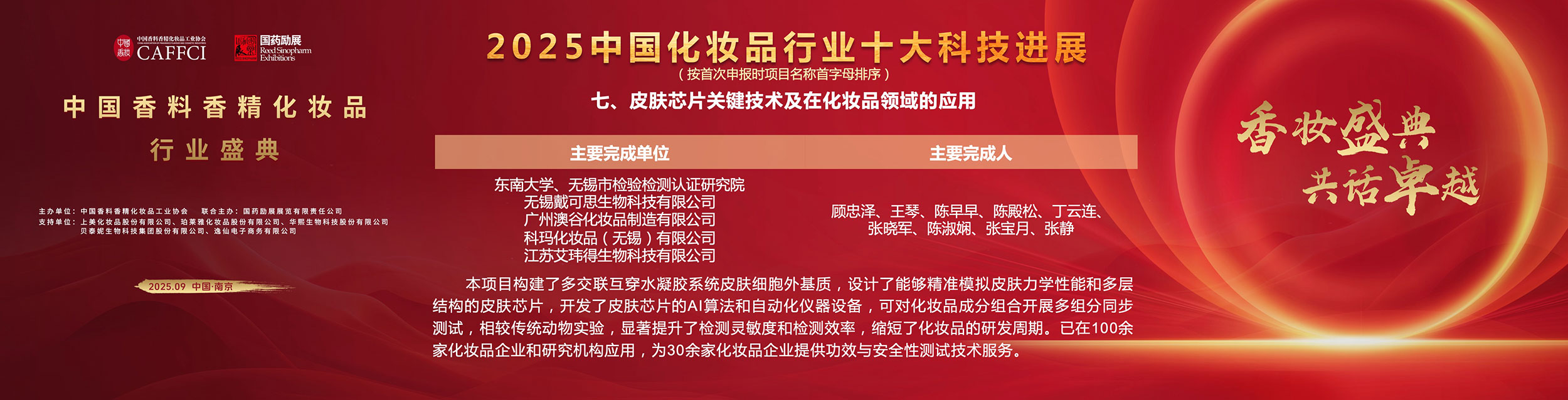 主要完成单位:东南大学、无锡市检验检测认证研究院、无锡戴可思生物科技有限公司、广州澳谷化妆品制造有限公司、科玛化妆品(无锡)有限公司、江苏艾玮得生物科技有限公司