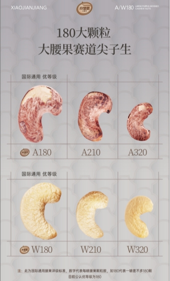 然而,就中国市场而言,大部分消费者不仅对腰果等级中所谓的“180”知之甚少,对其营养价值、新鲜好坏等品质,也常常缺乏分辨标准。