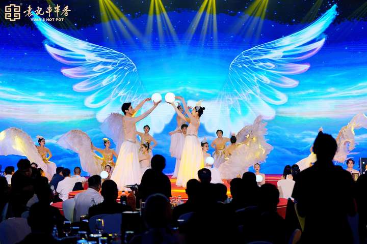 文化表演环节更将情感共鸣拉满:原创说唱《成都味道・袁记味道》用方言押韵,把牛油锅底的醇厚、签串的新鲜唱进歌词,潮流曲风碰撞传统川味;诗朗诵《群星闪耀》以真人真事为蓝本,讲述加盟商从夫妻小店到区域标杆的奋斗历程,字句动人;风尚大秀《星耀・袁缘》里,袁记员工化身模特,展现工作之外的多元风采;杂技《步步高・薪火登云》中,演员踩着高梯攀升,隐喻品牌 “步步向上” 的发展态势;音乐剧《袁 “缘” 不断》最是催泪 —— 通过 “父辈加盟袁记养家,子女接班拓店” 的真实剧情,道尽品牌与家庭之间跨越两代人的深厚联结。