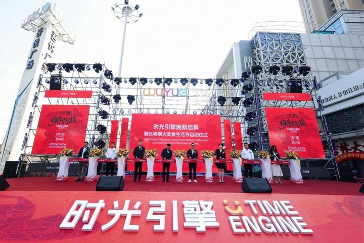 2025年9月30日上午,长春绿园吾悦广场"时光引擎"主题街区焕新启幕暨长春烟火美食生活节启幕仪式隆重举行。新城控股集团吾悦商管东北区域公司总经理陆兆传、绿园区政府各级领导及众多品牌方代表共同出席,与现场市民一道见证这一重要时刻。"时光引擎"室内美食主题街区的焕新重启,即将为长春市民带来全新的消费体验与文化盛宴,带动国庆消费市场活跃。