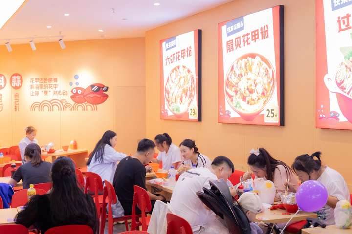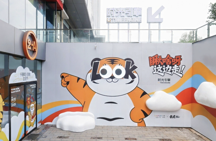 记者在现场看到,醒目的海报向消费者展示着丰富的开街活动,“吾虎时光漫游打卡即可领取原创IP周边”,“消费满额抽iphone17、真金钞票”“时光贴贴礼,团购加持”“会员权益限时升级礼遇”等多重福利,让现场队伍越排越长。