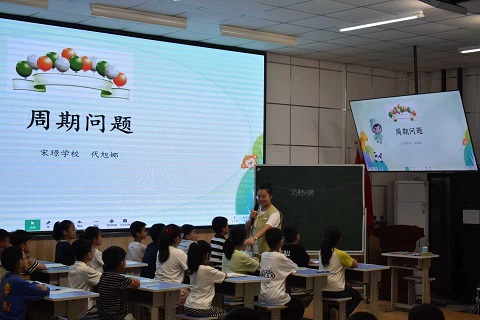 下午的展示课由宋璟学校代旭娜老师带来《周期问题》。她以布置生日会场的气球为情境导入,直接引导学生思考:“如何快速确定第17个气球的颜色?”代老师通过“圈一圈、标一标、算一算、看一看”四种方法,帮助学生理解周期问题的解题逻辑,并针对“余数可能出现的情况”进行专项讲解,夯实学生基础。