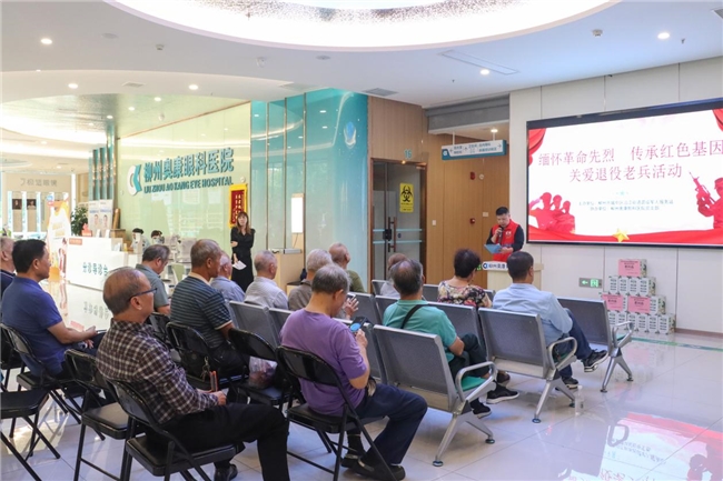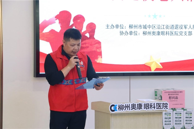 沿江街道退役军人服务站站长薛毅为活动致辞,对退役老兵为国家作出的贡献表示崇高敬意。柳州奥康眼科医院党支部书记禹海燕在讲话中表示,医院将一如既往地为退役军人提供优质的眼健康服务。