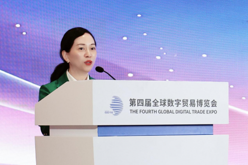 浙江省商务厅党组成员、副厅长胡真舫在致辞中表示,本届数贸会专业化、国际化、市场化水平持续提升,围绕展览、会议活动、榜单报告、赛事、投融资和专委会的“六位一体”的生态体系已初步形成,来自154个国家和33个国际组织的展商客商和嘉宾相聚杭州、共襄盛会。她表示,电商企业是数字贸易生态中的重要力量,希望以本次论坛为契机,进一步推动AI与数字贸易深度融合,培育更多新业态、新模式。此外,胡真舫向各界嘉宾发出诚挚邀请,期待2026年再聚第五届数贸会。