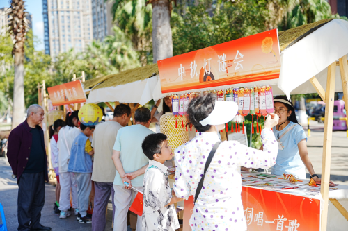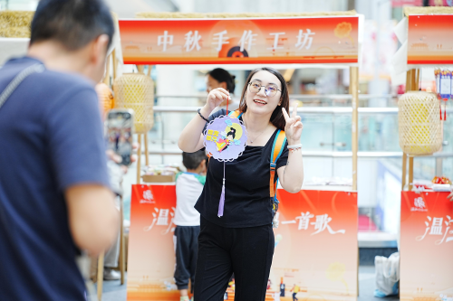 中秋主题手作体验项目尤为吸睛——不论是亲手绘制中秋手提灯,还是揉捏塑形黏土月饼,每一项都能让参与者沉浸式创作,亲手留住专属节日纪念。现场特设的灯谜小铺同样人气高涨,只要猜对3道就能兑换精美礼品。更有“嫦娥”全场巡游,随机为大家送上中秋祝福卡与小点心,带领市民游客沉浸式感受传统节日的雅致韵味。