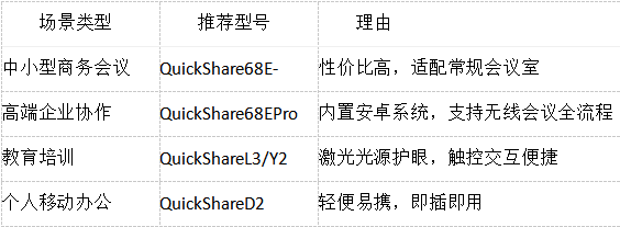 68E-:基础款,支持4K分辨率与多设备同屏,适合中小型会议室;